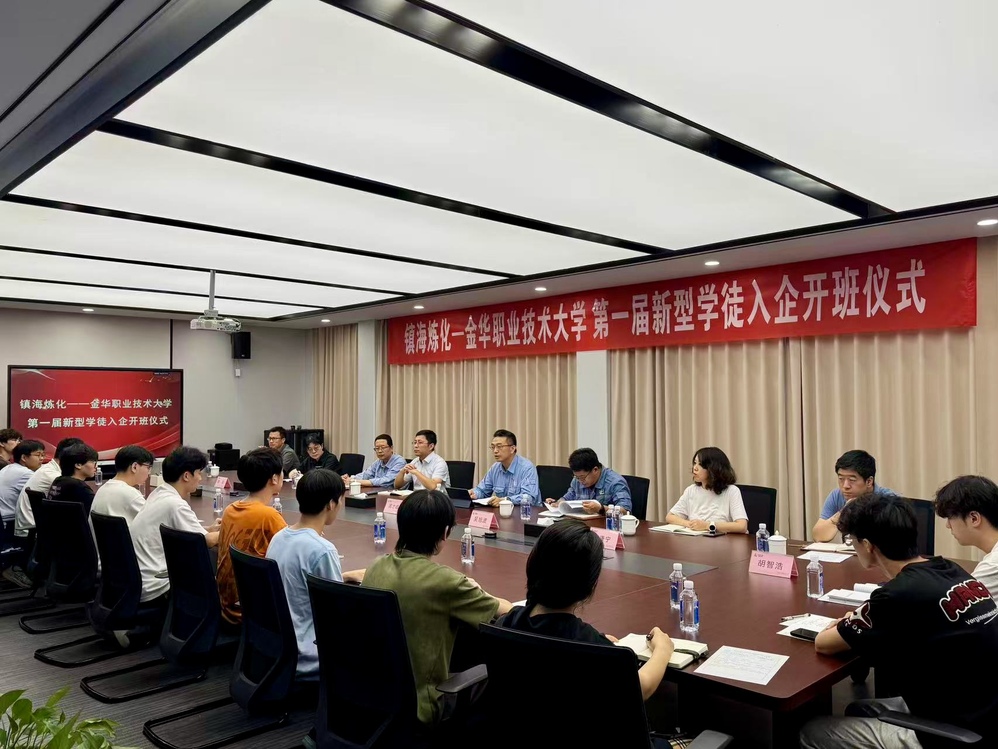 近日,首届金华职业技术大学-镇海炼化新型学徒班入企开班仪式在中国石油化工股份有限公司镇海炼化分公司党委党校顺利举行。校企双方领导、教师代表及首届12名新型学徒制学员共同参加,标志着双方在深化双元育人、协同培育技术技能型人才方面迈出重要一步。仪式由镇海炼化党委组织部(人力资源部)用工管理室主任胡智浩主持。