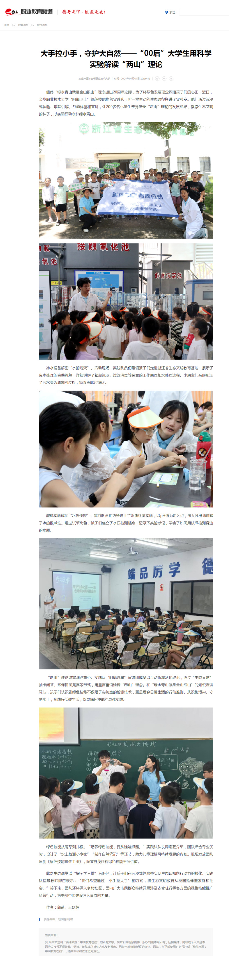 中国教育在线职业教育频道:大手拉小手,守护大自然——“00后”大学生用科学实验解读“两山”理论