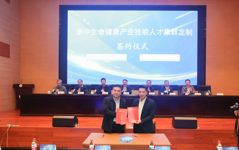 成立大会现场,金职大制药工程学院与金华健康生物产业园签署了技能人才集群定制培养协议。随后举行的主旨报告环节,来自浙江省产业发展中心、浙江中医药大学金华研究院的专家学者,围绕医药产业发展现状与前景、新技术应用等作了专题分享,为生命健康产业的高质量发展提供新思路。