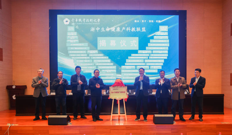 10月30日,由金华市生命健康产业链工作专班牵头发起、市经信局、科技局、市场监管局共同指导的“浙中生命健康产科教联盟”在金华职业技术大学正式成立。浙中地区相关高校、科研机构、医药企业等46家联盟成员单位现场见证了联盟的成立。金华市政协副主席、市生命健康产业链链长石骁敏出席并致辞。会议由金职大发规处处长王理凡主持。
