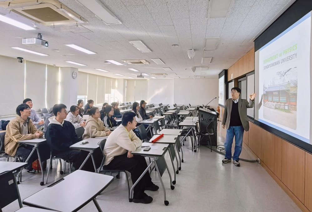 研学期间,专业交流亮点纷呈。同学们与成均馆大学师生聚焦专业难点展开深度研讨,在“化学改变世界”主题报告中,从药物研发的前沿视角读懂学科价值,进一步坚定了专业学习的方向与信念。走进物理化学学院实验室、纳米技术研究中心,师生们近距离观摩国际顶尖科研设备的运作流程,详细了解药物研发全链条技术与纳米技术的实际应用细节,直观感受国际前沿科研的严谨治学态度与创新活力。