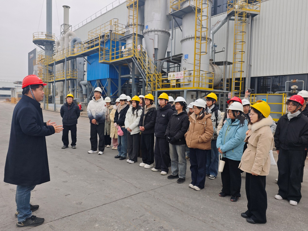 随后,师生走进浙江中科玖源新材料有限公司与兰溪博观循环科技有限公司开展实地研学。在企业技术骨干的带领下,师生参观了生产车间和研发实验室,了解企业在关键技术领域的突破成果,切身感受到企业技术工人身上所体现的专注严谨、精益求精的劳模工匠精神。参观过程中,学生围绕材料性能、工艺流程、岗位要求等与企业代表展开交流。安全241的李佳萍同学表示:“通过这次参观,我亲眼看到了兰溪产业的创新活力和绿色发展趋势,这对我们今后的就业选择很有启发。”