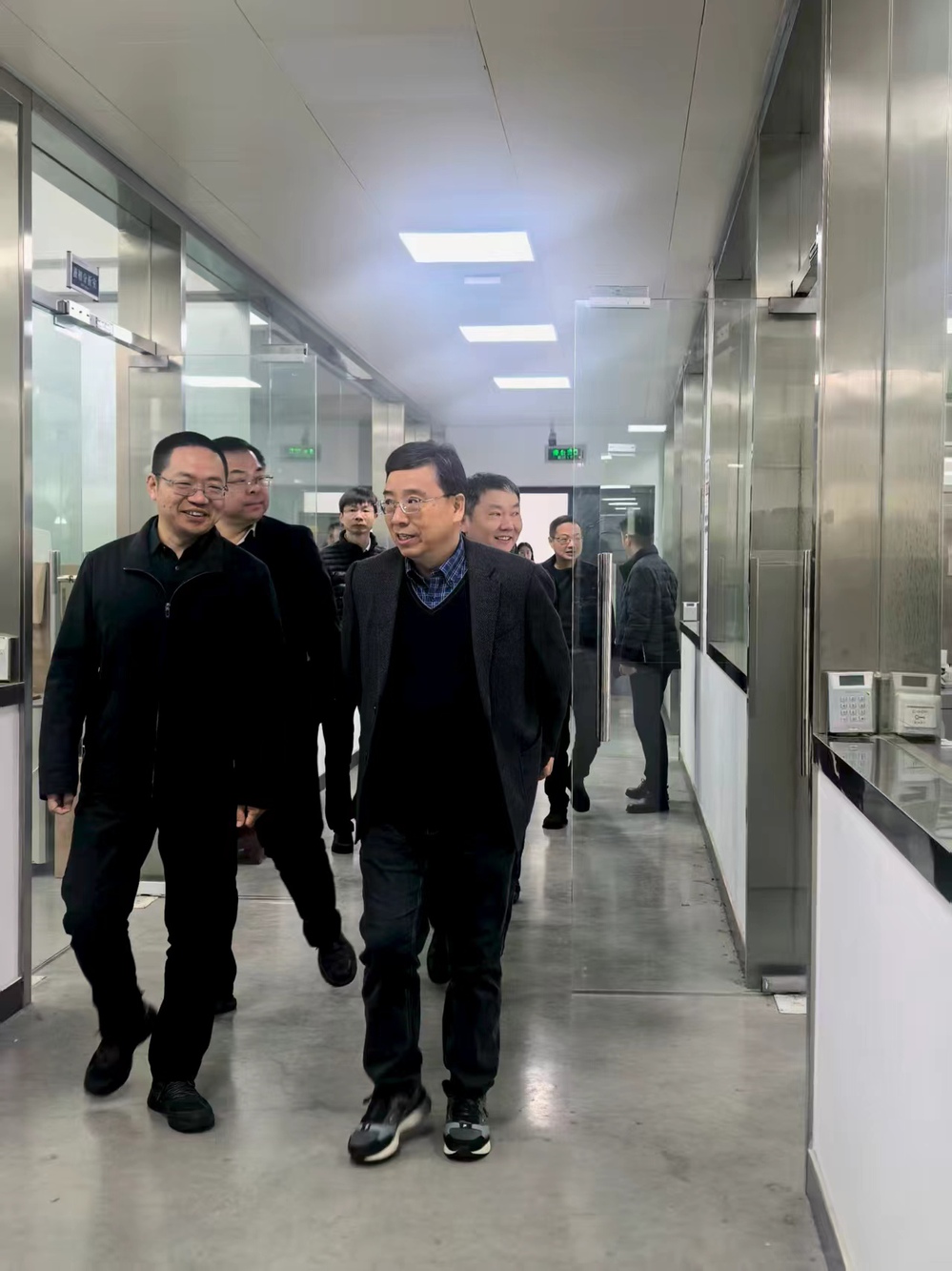 考察过程中,考察团详细了解了学院在人才引育、专业建设、创新研发及服务金华市重点产业等方面的阶段性成果与进展。双方就校企协同路径、科研平台赋能产业等进行了深入交流。浙江大学硅材料国家重点实验室常务副主任钱国栋对实验室的硬件配置、研发方向及前期成果给予认可,并针对性提出建设意见。