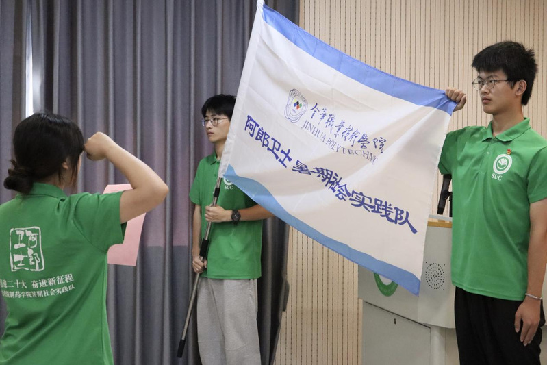 金祝年为实践队授旗,并作了动员讲话。出征之际,他提出三点希望与要求:一是希望大家能提高站位,严谨认真。希望全体同学能够提高站位,切实认识到这项工作的严肃性和重要性,以青春奉献、善行义举诠释城市底蕴、传递金华温度、展现金职风采。二是希望大家能增强安全意识,有序开展。全体参与的同学要时刻绷紧“安全”这根弦,在工作场地、往返途中和业余时间都要时刻增强安全意识,确保自己人身和财产安全。三是希望大家能展现学校风采,甘于奉献。要把“兼容并蓄 经世致用”的学校精神与“奉献、友爱、互助、进步”的志愿者精神相结合,发扬学校优良传统。
