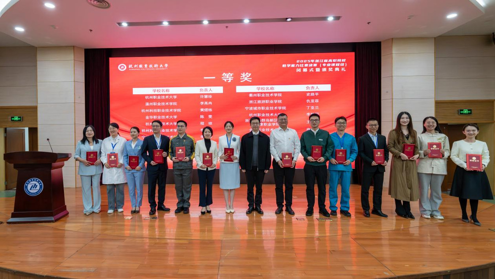 据悉,2025年浙江省高职院校教学能力比赛由浙江省教育厅主办,杭州职业技术大学和台州科技职业学院承办,重点考察教学团队针对课程中部分教学内容完成教学设计、实施课堂教学、达成教学目标、进行反思改进的能力。我院教师经过层层选拔,最终斩获一等奖的优异成绩。备赛过程中,校院两级领导高度重视,从资源调配到政策支持,为团队提供了全方位、多层次的坚实保障。接下来,学院将以此次获奖为契机,结合教师教学创新大赛、实验技能专项赛、青校赛等多维平台,持续提升教师教学素养,推动赛项成果与教学实践深度融合,切实增强教师教学能力。同时,学院将持续深化“产教融合、校企合作”新路径,积极培养更多高素质技术技能人才,为区域经济社会发展注入强劲职教动能。