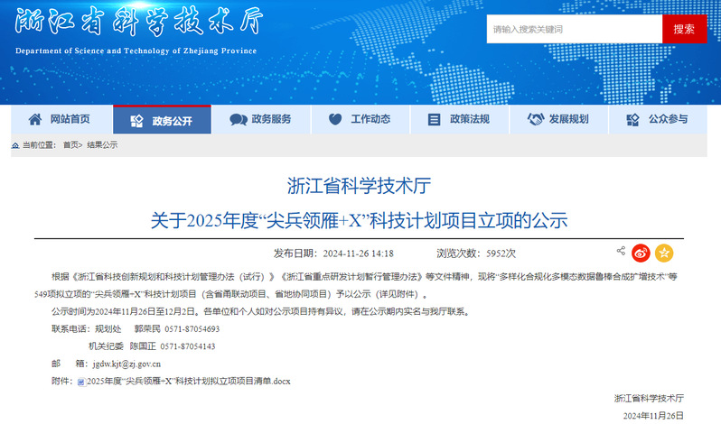 | 学院科技项目首次入选浙江省“尖兵领雁+X”科技计划项目 |